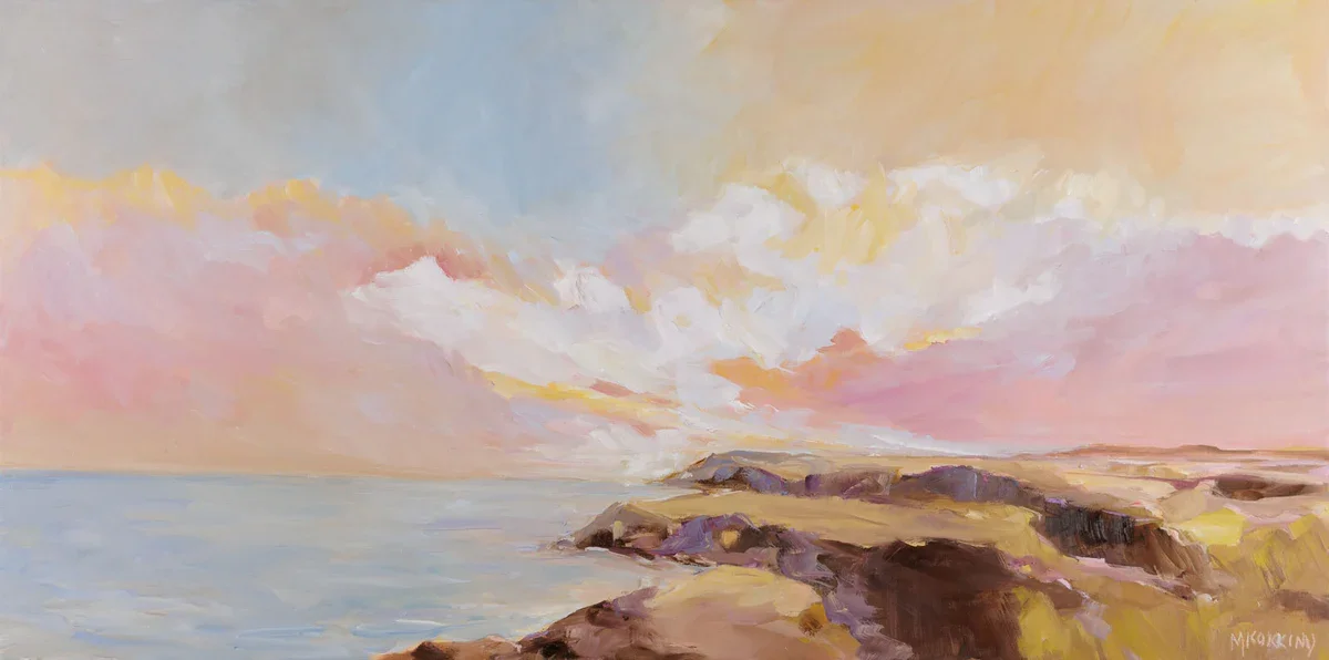 A textured colourful sky full of emotion. This oil painting a beautiful glorious sky as the day comes to an end.