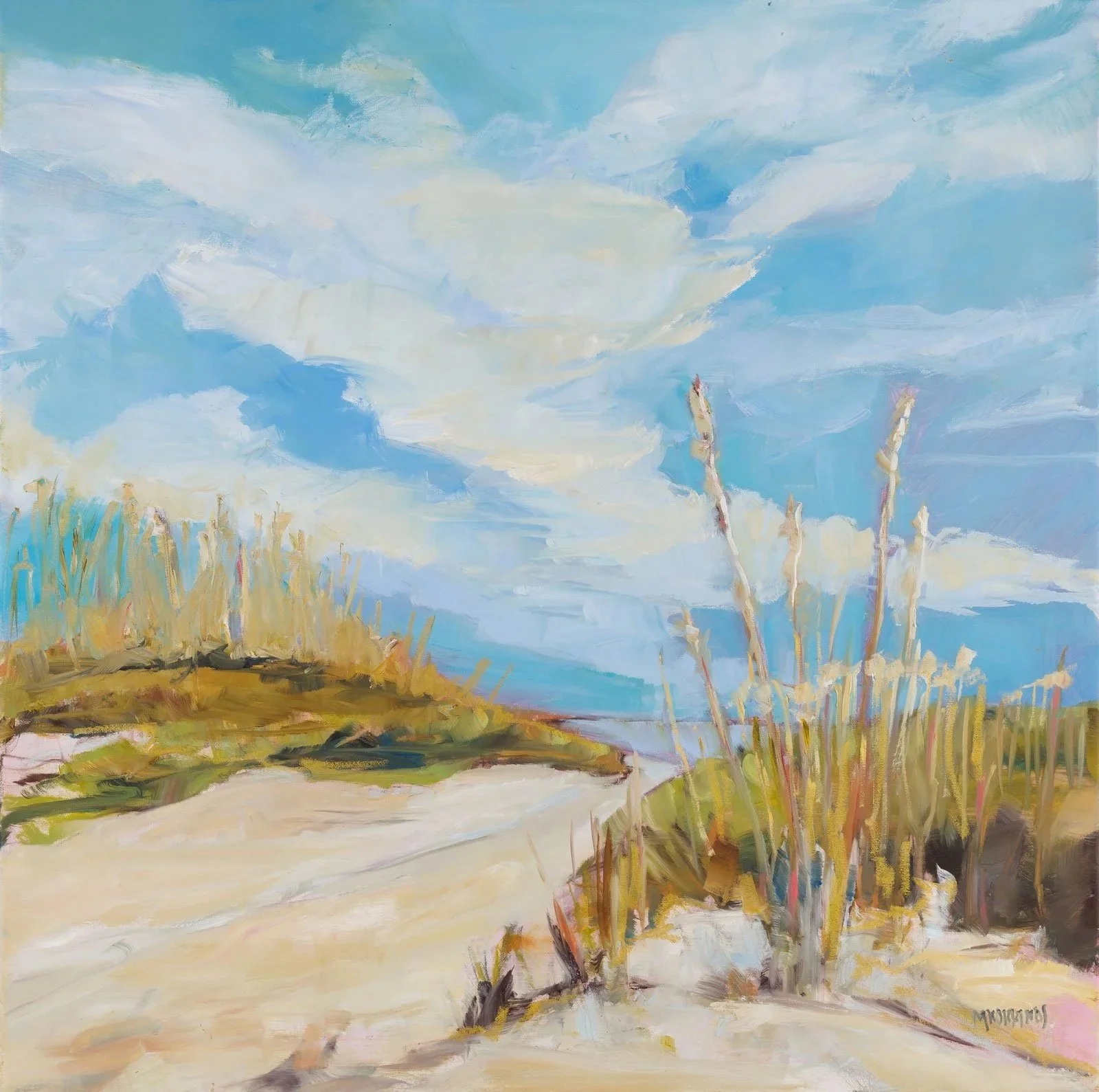 Between the Wind and Water 36x36 oil on canvasThe Long Afternoon 30x30 oil on canvasEdge of Quiet Water 40x40 oil on canvasCloud Whispers Along the Shore 30x30 oil on canvas